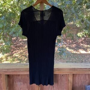 Reformation Black Ribbed Knit Mini Dress Raw Hem Size XS