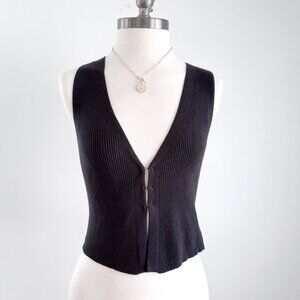 Reformation Black Ribbed Myrtle Vest XS Stretch Cotton Sweater
