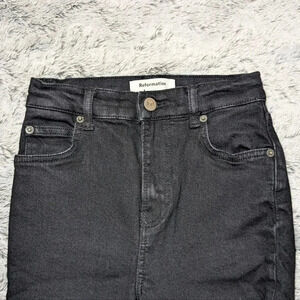 Classic super cute skinny black jeans with light wear and wrinkling around the waist.
