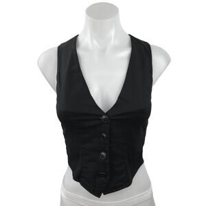 Reformation Black V Neck Sleeveless Button Front Cropped Vest Top Size 0