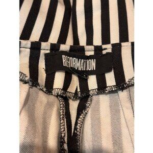 Reformation Black & White Striped High-Waisted Pants With Front Zipper & Pocket
