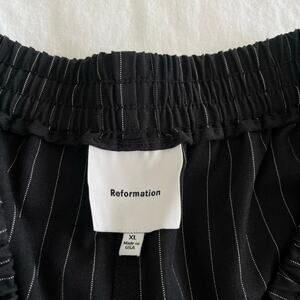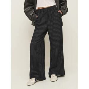 Reformation Black and White Pinstripe Tully Wide Leg Pull On Pant, Size XL