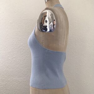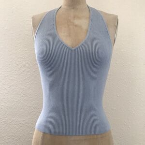Reformation Blue Organic Cotton Stretch Knit Sleeveless Cropped Halter Top - S