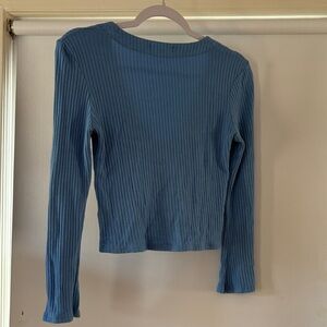 Chic ribbed shirt with button-down front. Long sleeves and V-neck design. Ideal for casual outings.