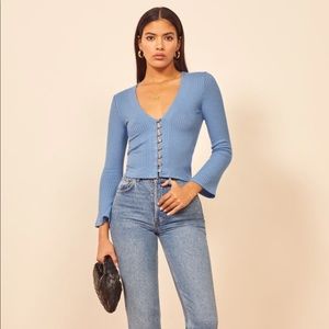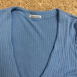 Reformation Blue Ribbed Button-Up Top