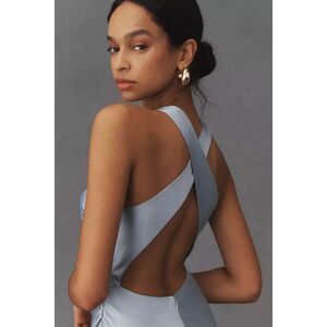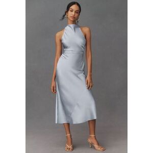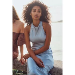 Reformation Blue Ruched Halter Sheath Dress Wedding