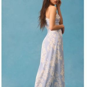Elegant one-shoulder maxi dress. Features a floral pattern. Perfect for summer occasions.