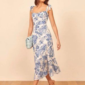 Reformation Blue and White Floral Midi Dress