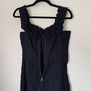 Reformation Bonita Dress 6 Black 100% Linen Ruffle Mini Smocked Preppy Going Out