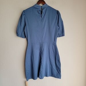 measures approximately 18" from pit to pit, 14.5" flat across waist, 21" flat across hips, 17" waist to hem, 34" long
