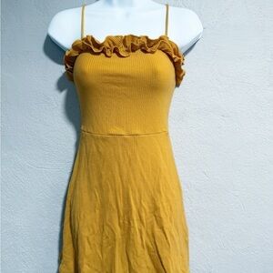 Reformation Bri Mini Sundress Size Small Golden Yellow ribbed knit stretchy. Great preowned condition