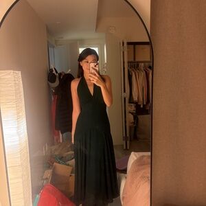 Wear the dress. Shop the Briony Dress from Reformation, a sleeveless dress with a halter neckline, drop waist, and flowy skirt.