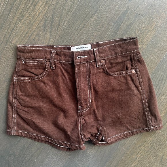 Reformation Brown Cowboy High Rise Jean Shorts - Size 24 and 26