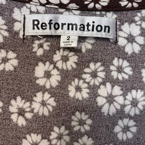 Reformation Brown White Floral Locklin Slit Midi Dress Size 2