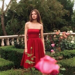 Reformation Buttercup Dress Size 10 Red Fit and Flare Strapless Midi Formal