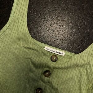 Stylish green crop top with ribbed texture. Features button-up front. Perfect for casual wear.