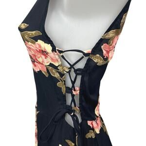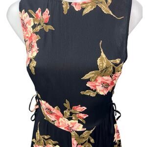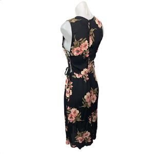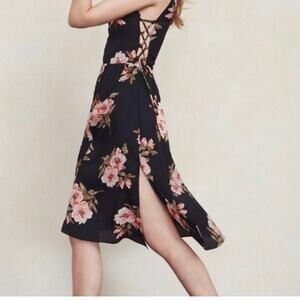 Reformation Camille Black Floral Sleeveless Lace Up Midi Fit & Flare Dress Sz 4