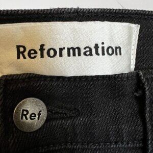 Reformation Camille Jeans Ripped Knees Black Distressed Raw Hem