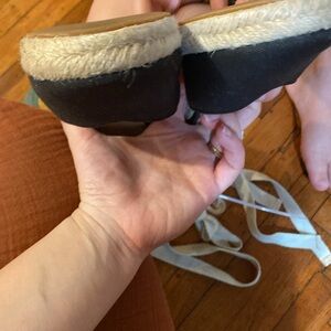 You probably need a vacation. The Camille is a closed toe espadrille with a v-shaped cut out on the front and a wrap tie at the ankle.