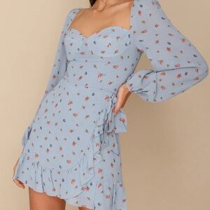 Reformation Cammi mini dress in a light blue floral print Super cute size 6 but fits a small / medium