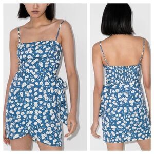 Reformation Canal Tulip Mini White Blue Dress Tank Floral Wrap Size 0