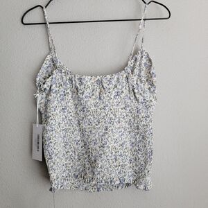 The Carine is a hip length top with a smocked bodice and adjustable spaghetti straps. Ruching at the bust allows for a comfy, breathable fit that makes it a good throw on and go option.