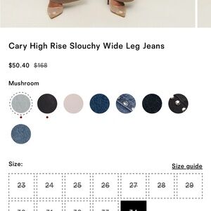 Product size: 27, inseam: 32", front rise: 12 3/4", leg opening: 23 1/2".