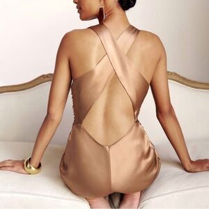 Reformation Casette Silk Dress Tan Nude Silk I’m Croissant Open Back MaxI 4