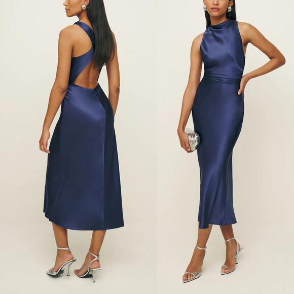 Reformation Casette Silk Midi Dress Blue Iris Size 6 NWT