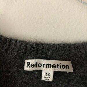 Reformation Cashmere Boyfriend Pullover Sweater in Charcoal with Ivory XS READ