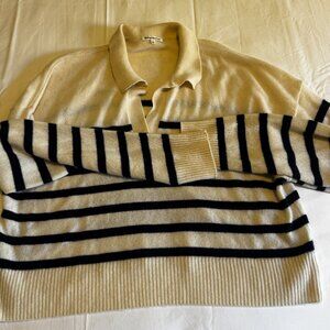 Reformation Cashmere Polo Sweater Navy.Stripe Large