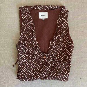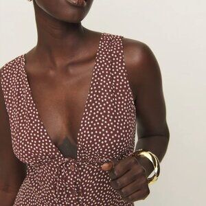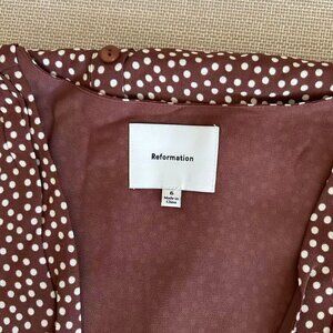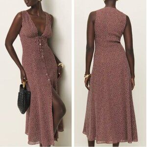 Reformation Ceara Midi Dress Sz6 Choco Dot Polka V Neck French Causal Summer
