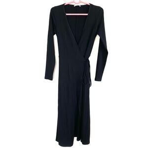 Reformation Celine Black Ribbed Wrap Midi Dress Women Medium Basic Closet Staple