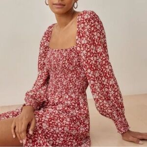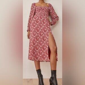 Reformation Cello Flower Girl Floral Print Midi Dress Red & White Size Small