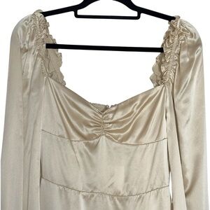 Reformation Champagne Silk Novelia Long Sleeve Mini Dress Womens 6