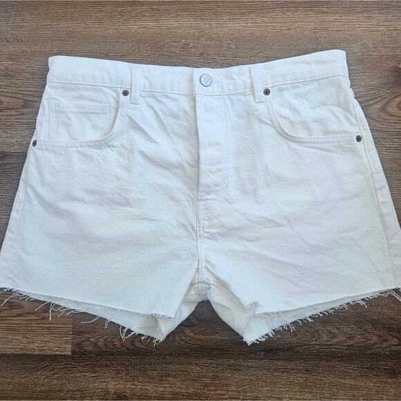 Reformation Charlie High Rise Denim Jean Shorts Raw Hem White New Size 31