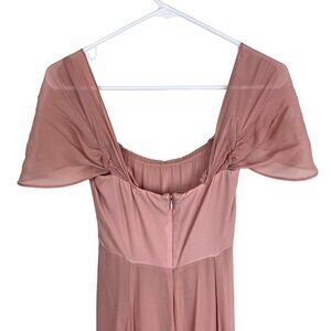 Reformation Chiffon Flutter Sleeve Square Neck Maxi Gown Dress Dusty Rose Size 0