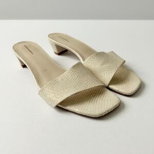 Reformation Christina Slide Sandal in Almond Snake Emboss. Good used condition with light wear as pictured. Size 7.
