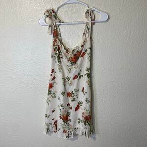 Reformation Christine Dress Floral Ruffle Tie Strap Mini Dress Size Small