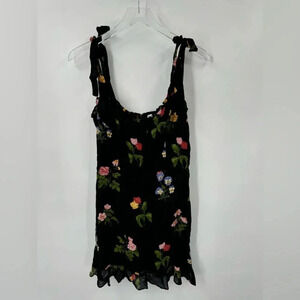 Infinitely charming and ruffled in all the right places, this barely there dress tops off the look with tie sleeves and the sweetest of necklines.