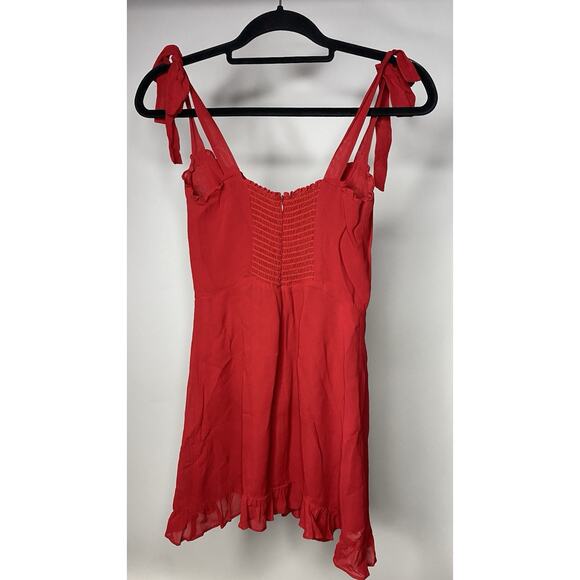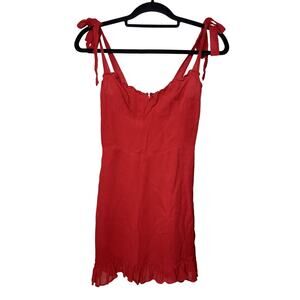 Reformation Christine Mini Dress Women's 4P Petite Red Tie Strap Ruffle Short. Zip closure with some elastic smocking on the back for perfect fit. Tie sleeves. Very short. Super cute dress!