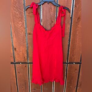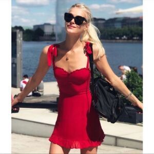 Reformation Christine Ruffle Shoulder Tie Lipstick Red Mini Dress size 10