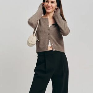 Reformation Clara Cashmere Crew Cardigan in Cocoa