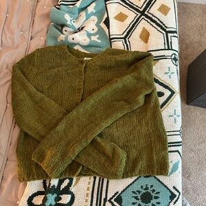 Apple green alpaca cardigan with matching buttons from Reformation. Excellent condition.