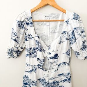 Reformation Clay Toile Linen Cut Out Mini Dress Size 0 Angelic Romantic White