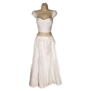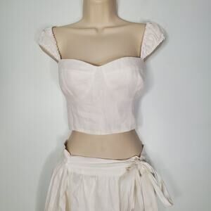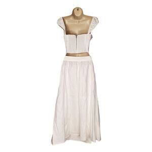 Reformation Clyde 2 Piece Set 100% Linen Midi Skirt Crop Top Bustier White 10