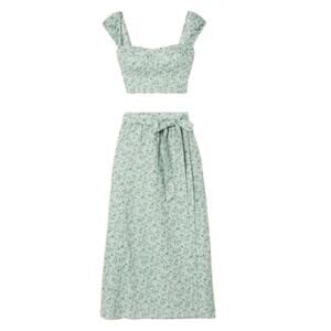 Reformation Clyde Linen Two Piece Wrap Full Midi Skirt Crop Top Set Agave 10 NWT