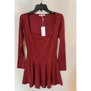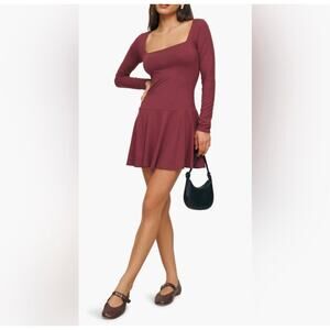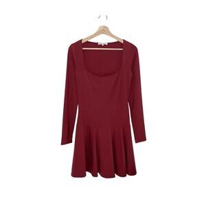 Reformation Coen Jersey Knit Long Sleeve Square Neck Mini Dress Chianti small