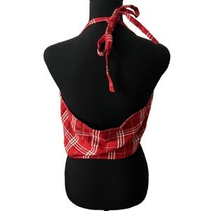 Reformation Connie Linen Plaid Halter Top 10 Women’s Red