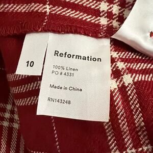 Reformation Connie Linen Plaid Halter Top 10 Women’s Red.